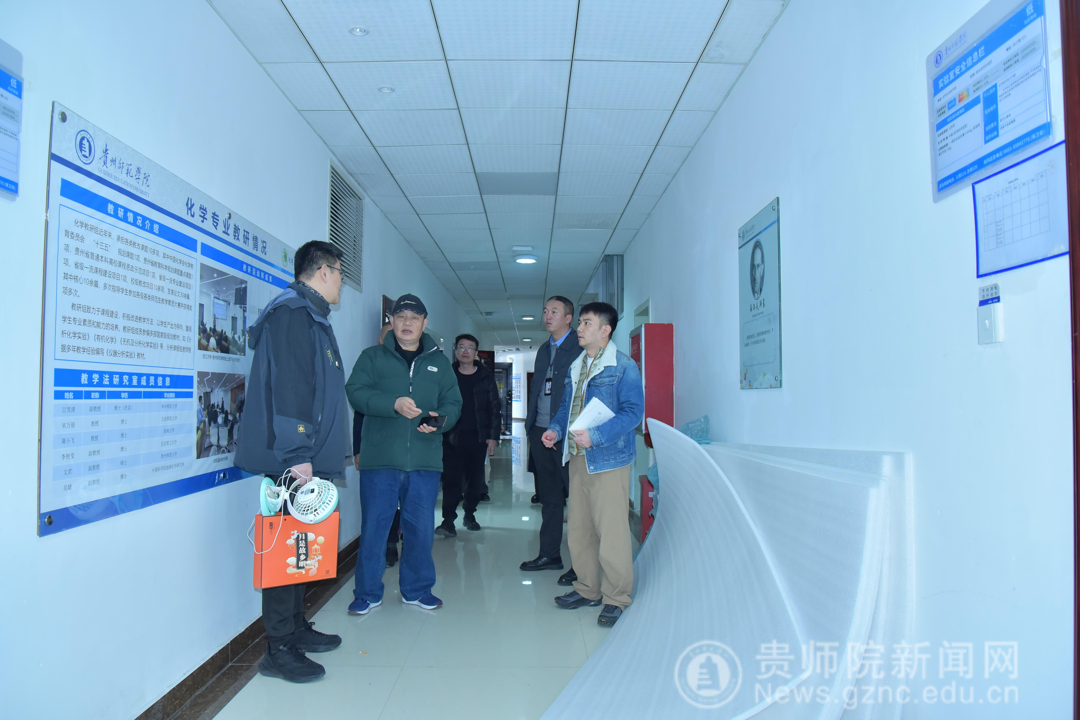 为确保寒假期间实验室安全,严防实验室安全事故发生,保障全校师生度过一个平安祥和的春节假期,1月13日下午,教学实验管理中心副主任王波带队,科研处、保卫处、后勤处和物业相关工作人员组成检查工作小组,对学校实验室进行了寒假前安全检查。