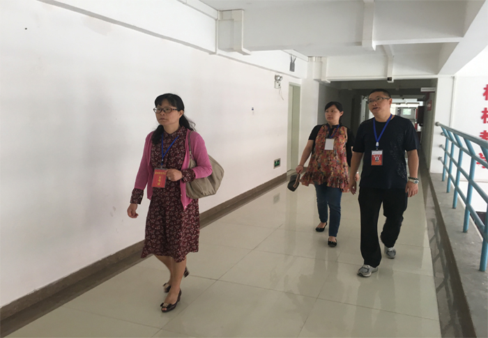 副校长郭文、教务处副处长刘宪帮、李佩对考点进行巡视