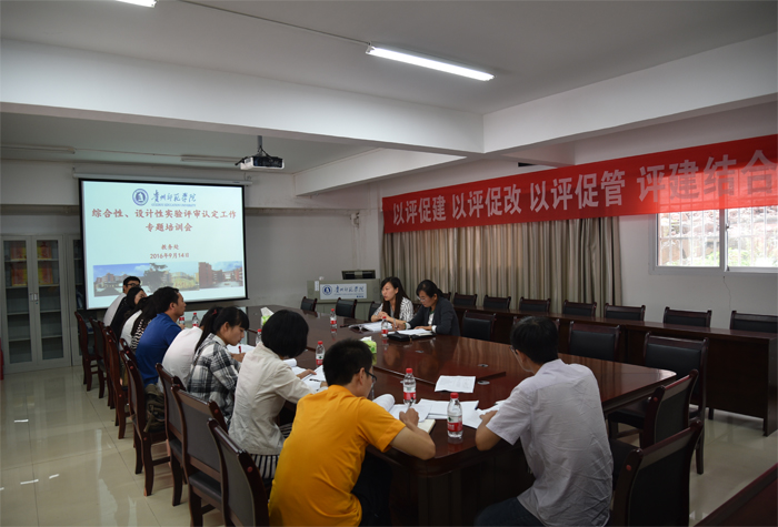 会上,教务处实验教学管理科科长聂冬梅对上学期综合性、设计性实验项目评审工作进行了经验总结,对评审过程中集中存在的问题也进行了通报和解释。为做好本学期即将开展的评审认定工作,聂冬梅依照《贵州师范学院综合性、设计性实验管理暂行规定》,对教务处在2016年9月2日下发的《关于2015-2016学年第二学期综合性、设计性实验项目评审认定结果通报及本学期综合性、设计性实验项目评审认定工作启动的通知》中的工作内容和要求逐一做了现场培训。与会人员也围绕此项工作进行了热烈的讨论和交流。教务处对大家提出的相关问题做了详细的解答。