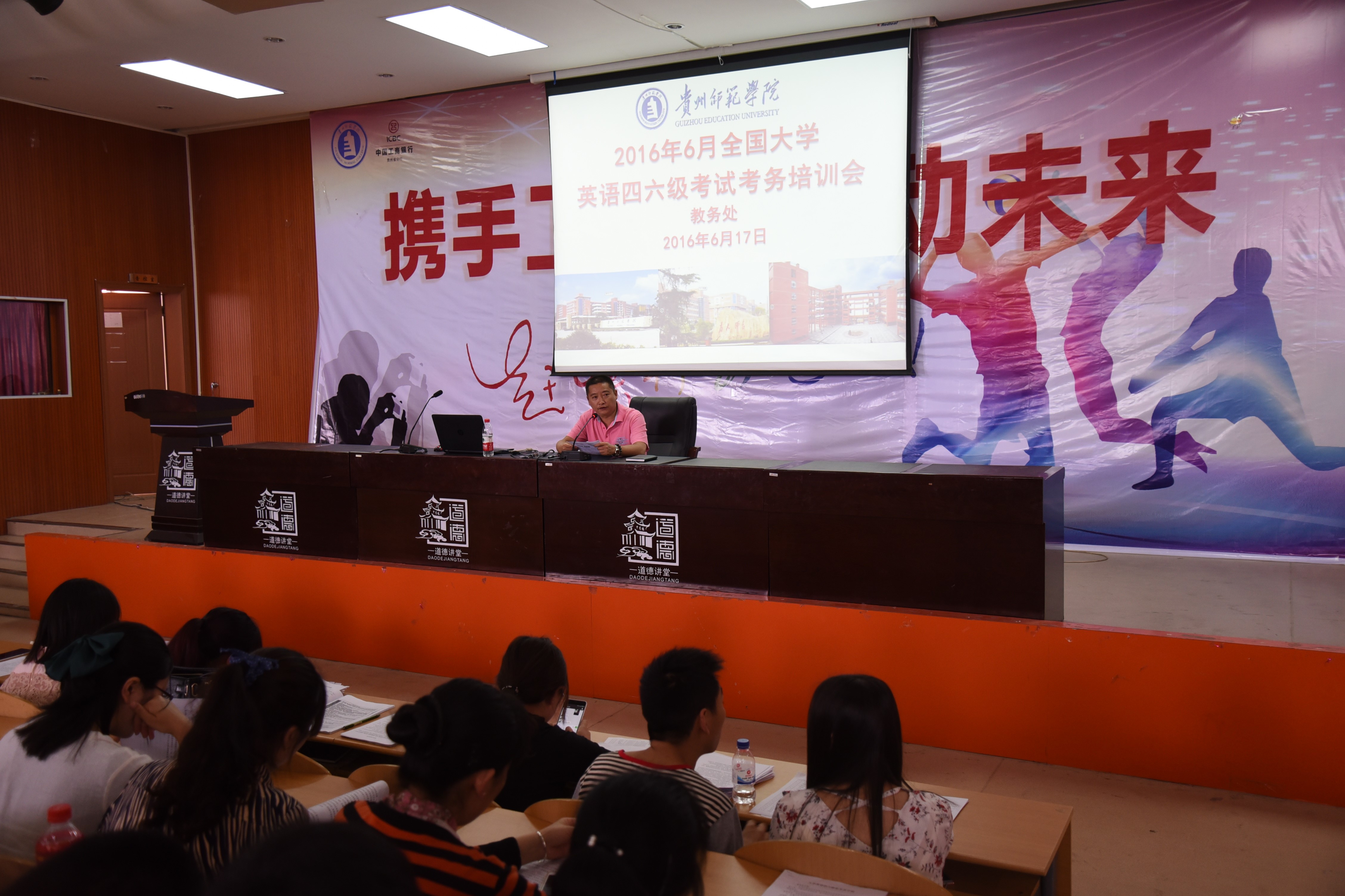 6月17日中午12:30,监考教师考务工作培训会在文韬苑学术讲堂举行,全体监考教师及考务工作人员参加培训,并领取了考务培训的相关材料。刘宪帮在会上传达了教育部、省招生考试院及学校对考试纪律的要求进行解读,并对《贵州师范学院教学事故处理办法》中关于监考工作的相关条款及本次监考工作流程、注意事项进行了培训,对操作过程中容易出现的问题进行了说明和解释。并强调,多年来我校都较为成功地完成了全国大学英语四六级考试,大学英语四六级考试作为一项国家级考试,维护其公平、公正和严肃性,是我们每一位教职工应尽的责任,要求全体人员高度重视,认真学习监考操作规程,严格抓好考风考纪工作,杜绝失误,切实保证考试工作顺利完成。