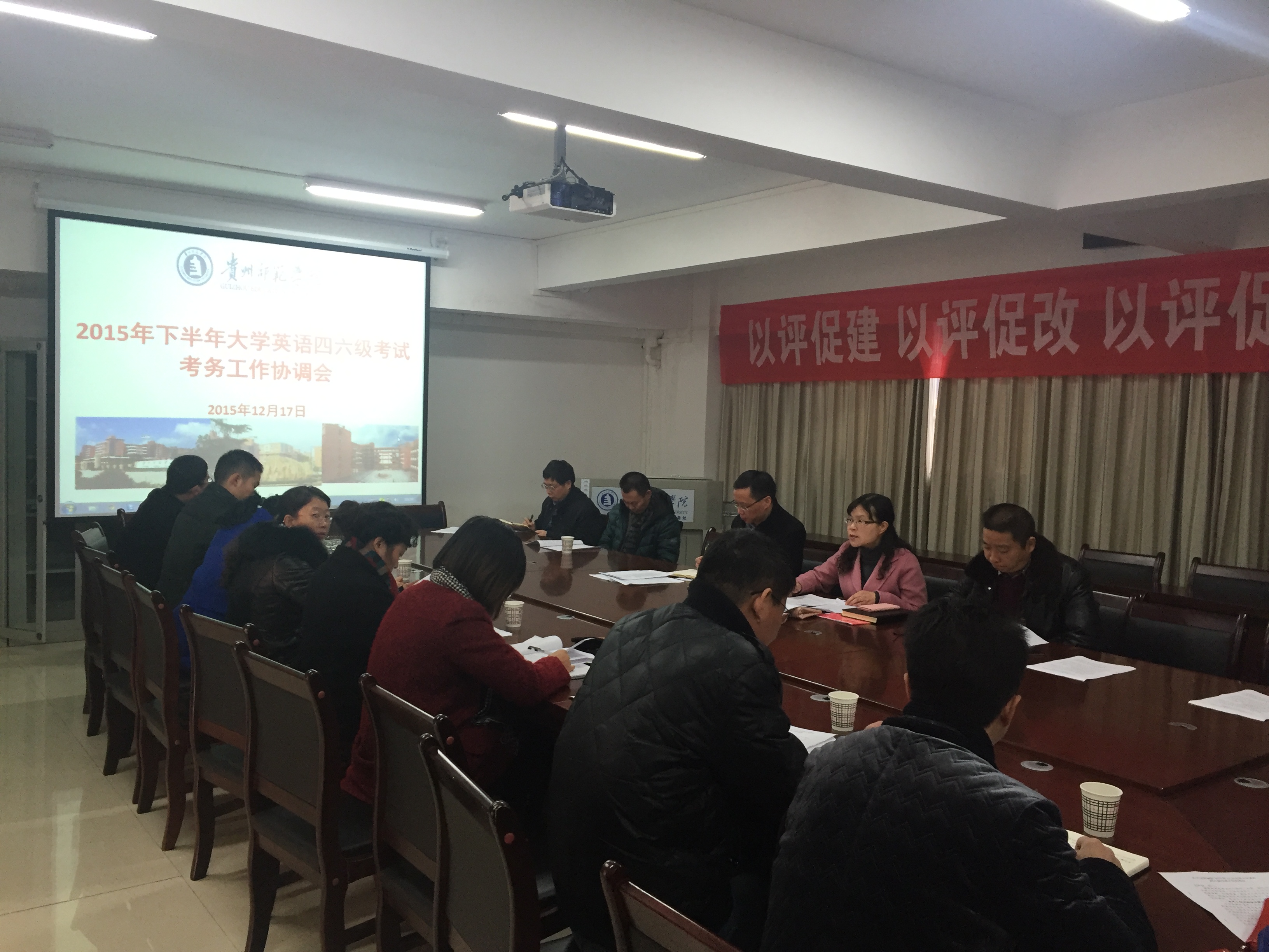 教务处处长熊世桓要求各学院进一步加强考风考纪,对考生进行诚信教育,加强监考教师的责任意识,确保考试工作的顺利推进,副处长刘宪帮就本次报考情况进行了通报并对相关部门的协调工作进行了安排。