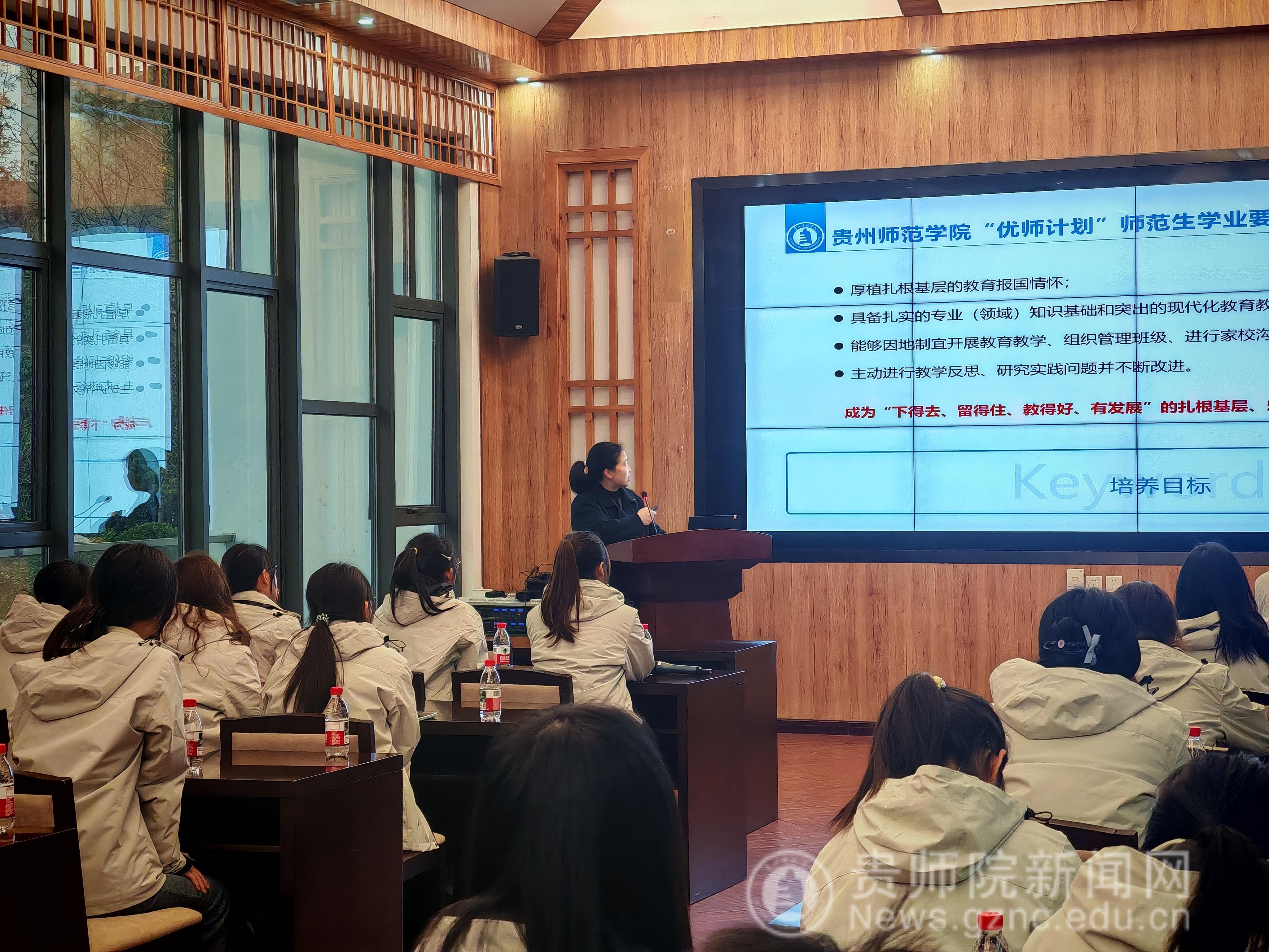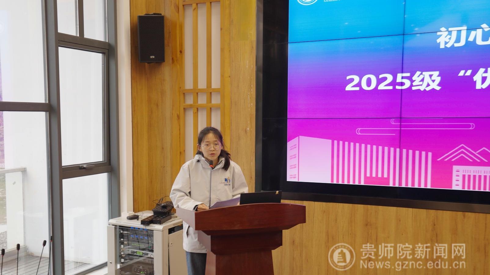 潘运在致辞中代表学校向全体“优师计划”新生表示欢迎,并阐述了“优师计划”对贵州基础教育发展的重要意义。他指出,贵州正处在从“教育大省”迈向“教育强省”的关键时期,迫切需要一批“下得去、留得住、教得好、有发展”的基层教师。潘运勉励同学们要将个人成长的“小我”融入贵州教育发展和乡村振兴的“大我”之中,并对大家提出三点期望:一要深植乡土情怀,主动了解贵州省情教情,厚植对贵州土地和孩子的感情;二要锤炼育人本领,努力成为专业知识扎实、教学能力突出、适应乡村需要的复合型教师;三要勇担振兴责任,立志做学生成长的引路人和乡土文化的传承者。他叮嘱同学们珍惜时光,学会读书、思考与创新,以未来优秀教师的标准要求自己,为投身贵州基础教育奠定坚实基础。