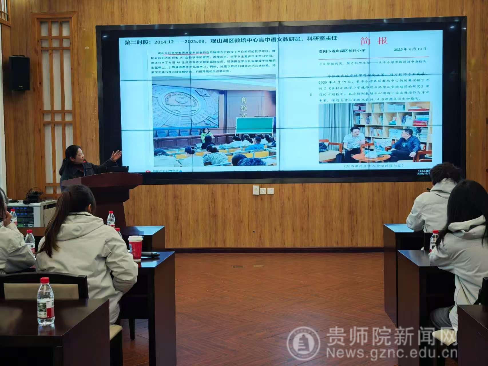 作为本次活动的重要环节,“印山杏坛”系列讲座正式启动。首讲嘉宾、贵州省特级教师、正高级教师李家慧以“念念不忘,必有回响”为主题,结合三十五年扎根教学教研一线的经历,分享了她分享了她在教学研究与教师成长方面的体会。她勉励师范生永葆教育热情,在未来的岗位上不断学习、深耕实践,实现从“经师”到“人师”的成长。