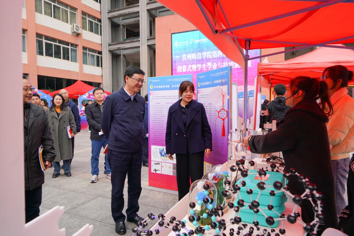 为深入落实立德树人根本任务,全面展示学校教育教学改革成果,彰显学生实践能力与创新精神,营造积极向上的学习与学术氛围,贵州师范学院于2025年12月19日在凤凰广场成功举办第四届教学节闭幕式暨学生学业与技能成果展。活动吸引了全校师生广泛参与,集中展示了各学院的教学特色与学生风采。